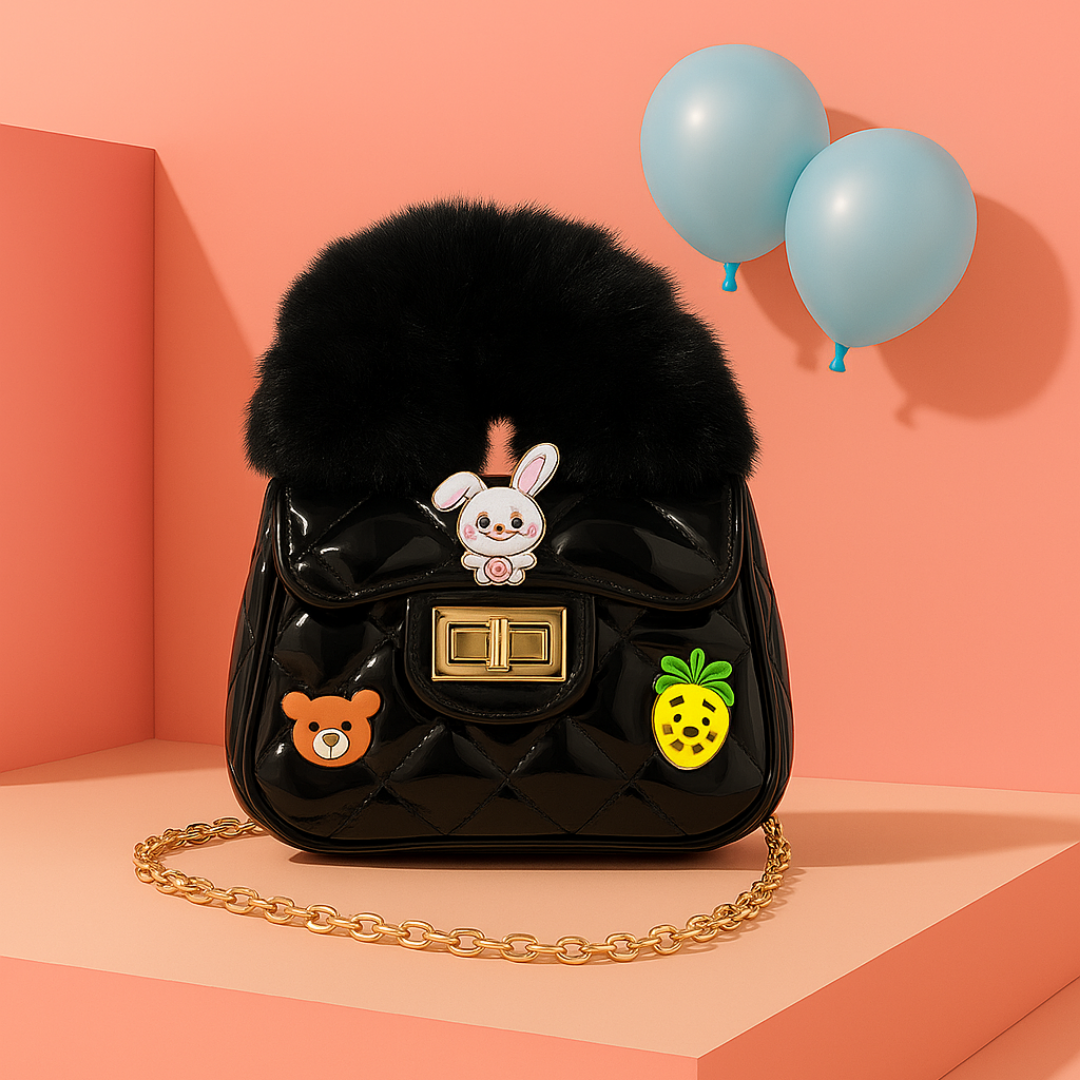 Noire Luxe Quilted Fur Handle Handbag for Girls